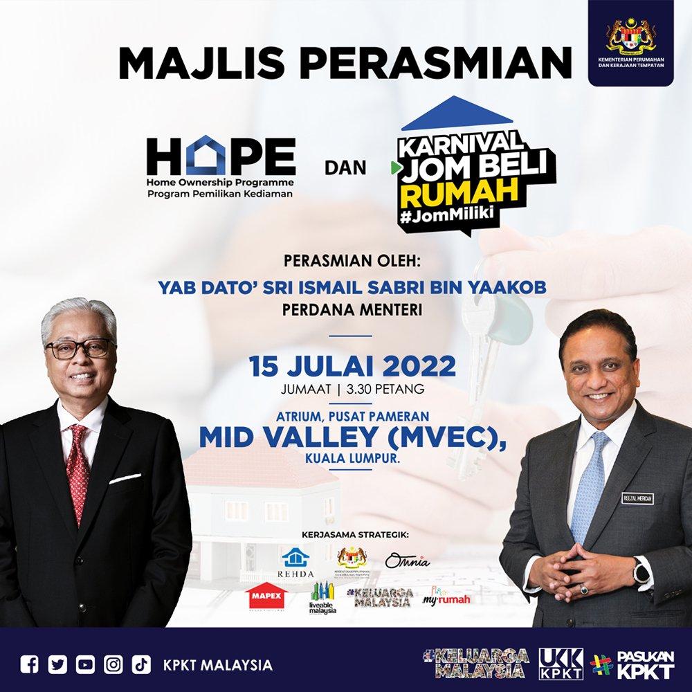 Sempena Karnival Jom Beli Rumah 2022 (KJBR 2022), turut diadakan Pelancaran Program Pemilikan Rumah (Home Ownership Programme - HOPE) oleh YAB Dato’ Sri Ismail Sabri bin Yaakob, Perdana Menteri pada 15 Julai 2022 (Jumaat) di tempat yang sama.